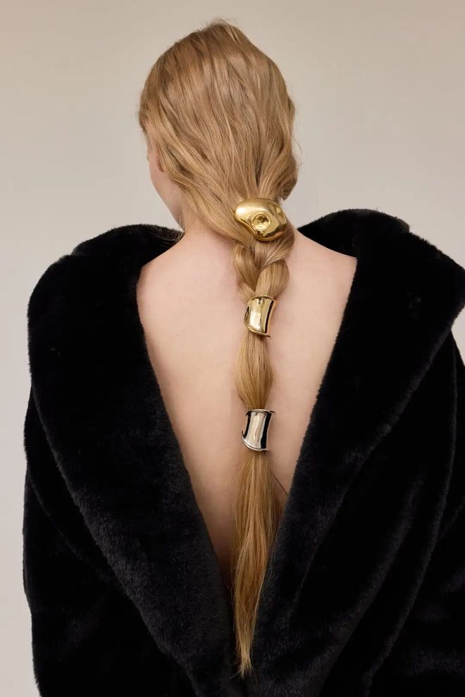 金属发圈以弧形、方形、肌理、线条等为主,风格简洁流畅又具现代感。LELET NY 的褶皱与编织纹理设计增添艺术气息,NEW LOOK 的交叉线条简约而醒目,H&M 则以螺旋、线条突出现代趣味。整体风格简约精致,既能满足日常通勤需求,也能点亮派对造型,百搭且时尚度高。