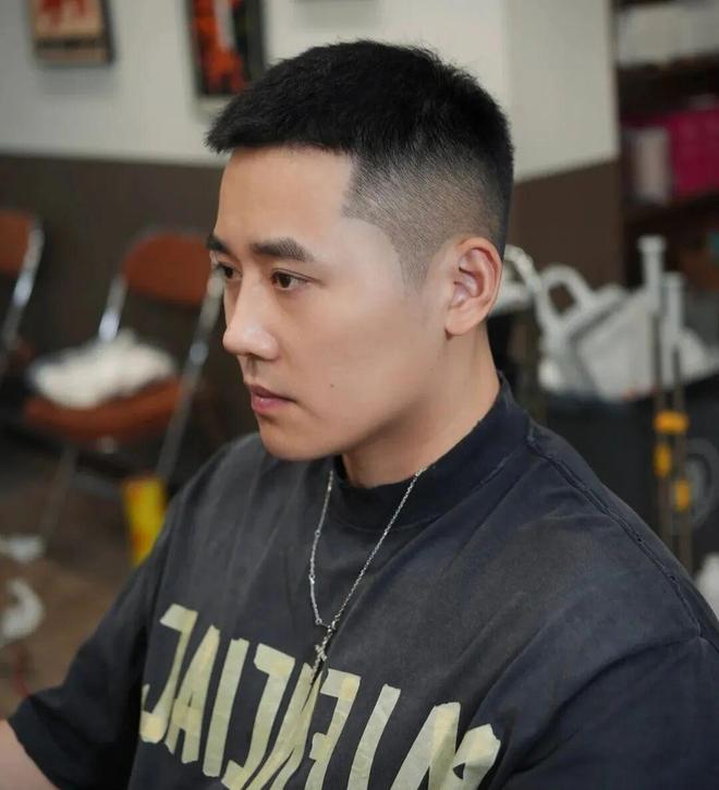 要是你嫌每天打理头发麻烦,又想显得精神,寸头绝对是最优解。粗硬发剪短后不会软塌塌地贴在头皮上,反而能保持清爽的层次感,还能悄悄修饰头型——头大脸宽的男生剪完,视觉上直接显瘦一圈,而且夏天剪完巨凉快,再也不用体验“头发闷出汗”的尴尬,走在街上都自带“干净少年感”。