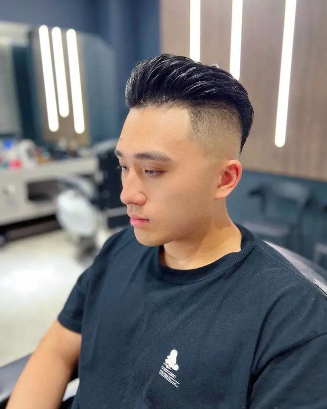 别以为粗硬发只能走成熟路线,前刺直接帮你解锁“活力男孩”模式。把头顶头发剪得长短适中,再用发蜡把发尾抓出向上的小刺,粗硬的发质刚好能让“刺”立得稳稳的,不会软趴趴地塌下来。搭配两边渐变的推剪,既能显高颅顶,又能让五官更立体,上学、打球、逛潮牌店都超搭,回头率直接拉满!