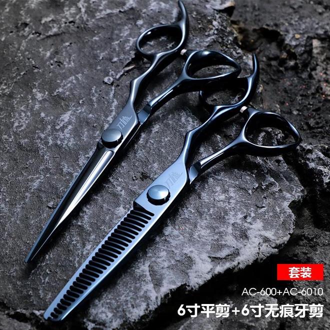 刀雄美发剪理发剪刀剪头发发型师专用美发工具理发店平剪 6寸平剪+去量10-15无痕齿牙剪AC