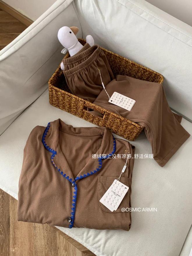 怕冷星人”续命睡衣!颜值超高,超暖和!巧克力原版德绒编织睡衣套装,纽扣上衣+长裤!走线做工面料都很精致,居家外出都能穿。